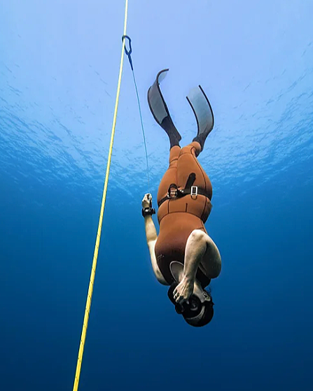 Training on the line introduces you to depth in a safe and controlled way. You learn how to descend properly, equalise efficiently, and relax as you go deeper. Over time, this opens up parts of the ocean that most people never reach. It’s not just about going deeper for the sake of it, but about feeling comfortable and in control when you do.