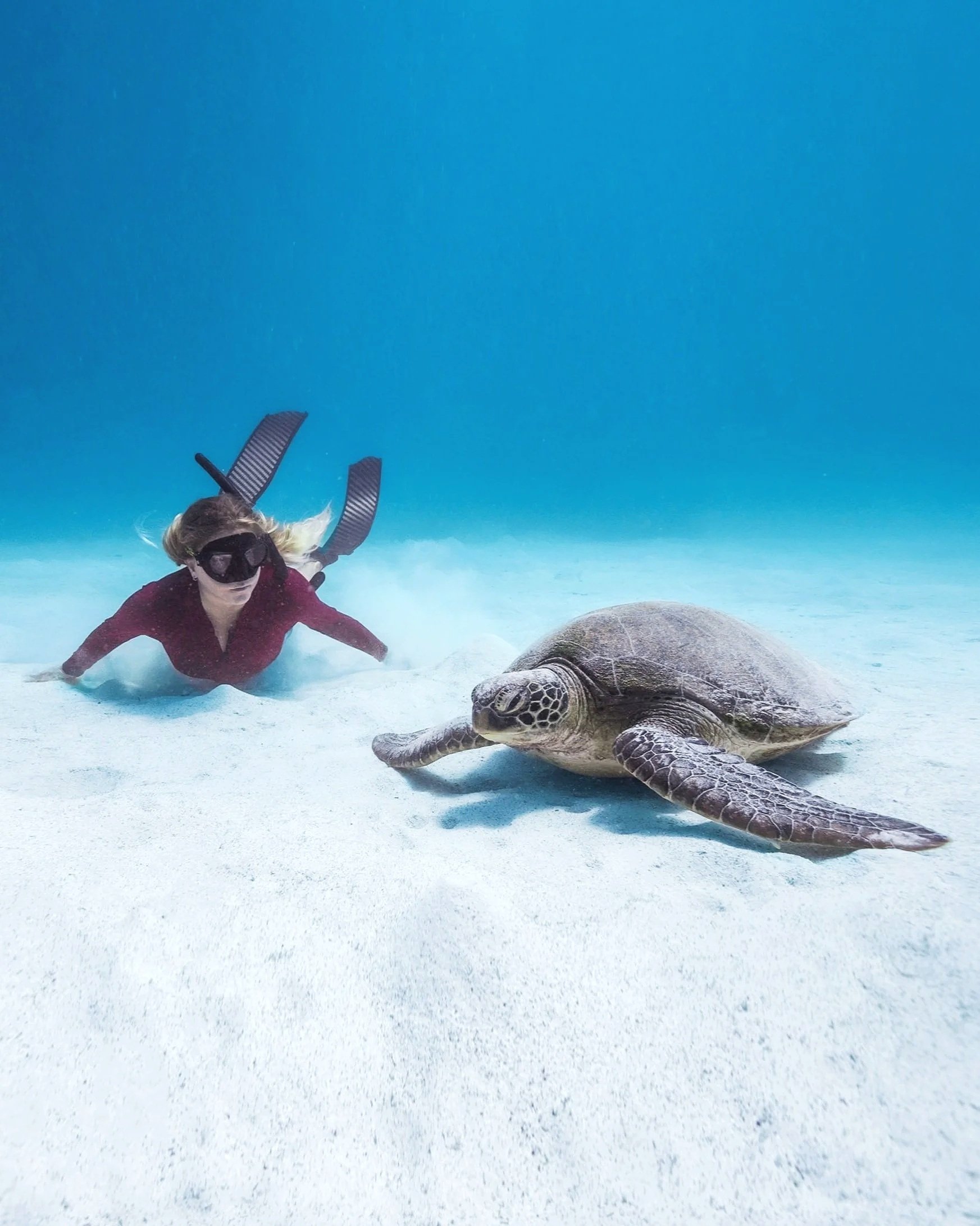 Small changes in technique make a big difference. Learning how to fin efficiently and streamline your body means you move through the water with less effort and less noise. Once you learn to duck dive and descend efficiently, you stop disturbing everything around you. This allows marine life to feel safe enough to stick around rather than swim away, and it’s often the difference between a quick glimpse and a close, undisturbed encounter.